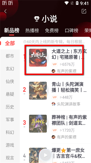 3、在小說(shuō)榜單界面,選擇想要收看的小說(shuō)專(zhuān)輯,進(jìn)入詳情頁(yè)面。