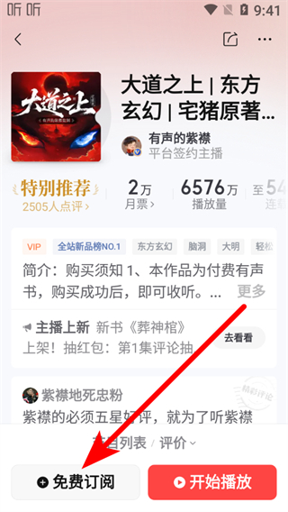 4、在專(zhuān)輯詳情頁(yè)面,可點(diǎn)擊免費(fèi)訂閱,進(jìn)行小說(shuō)收看。