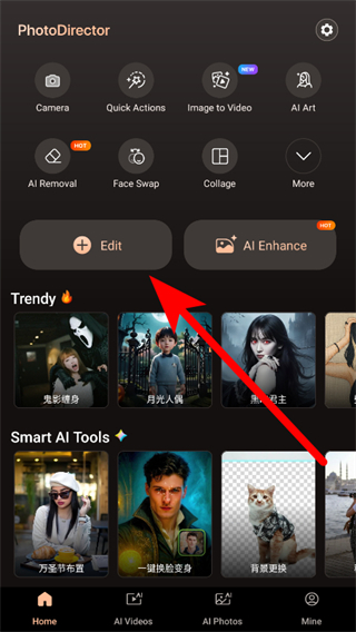 1、打開相片大師(PhotoDirector)應(yīng)用,點(diǎn)擊Edit按鈕。