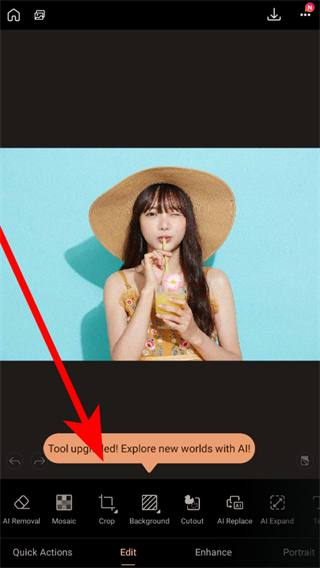 3、進(jìn)入編輯頁面后,可使用Mosaic(馬賽克)、Crop(裁剪)、Background(背景)等工具進(jìn)行編輯。