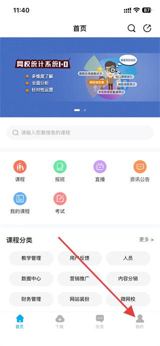 1、打開(kāi)網(wǎng)校課堂app,點(diǎn)擊底部導(dǎo)航欄我的選項(xiàng)。
