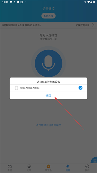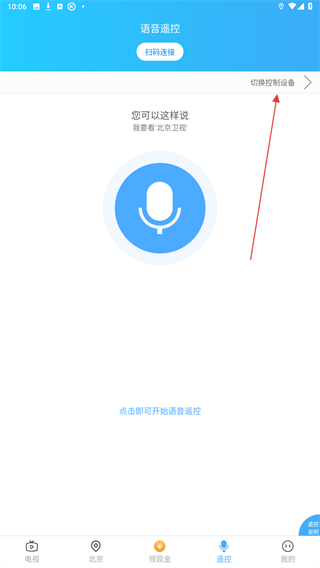2、進入語言遙控的頁面內,點擊切換控制設備的按鈕。