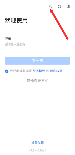 1、打開藍(lán)信APP相關(guān)界面,需要點(diǎn)擊右上角的工具圖標(biāo)。