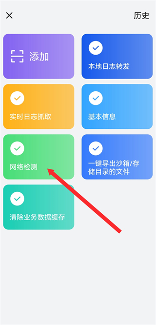 2、在系統(tǒng)彈出的功能菜單中,我們需要點(diǎn)擊網(wǎng)絡(luò)檢測。