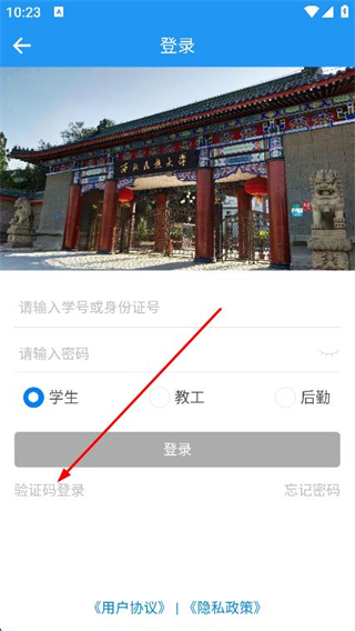 3、進(jìn)入登錄頁面后,點(diǎn)擊左下角的驗(yàn)證碼登錄選項(xiàng)。