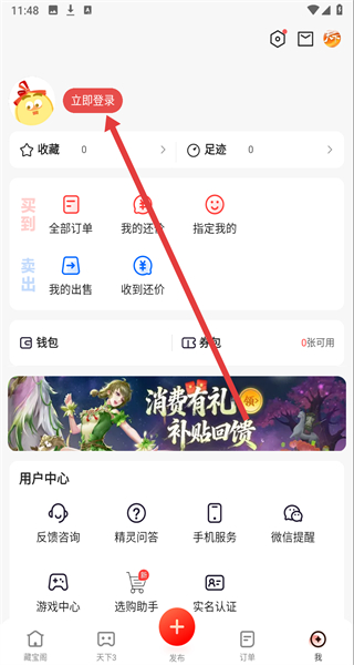 2、個(gè)人中心頁面點(diǎn)擊“立即登錄”,進(jìn)入賬號(hào)登錄選擇界面。