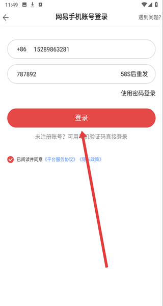 4、輸入手機(jī)號(hào)碼和短信驗(yàn)證碼,勾選協(xié)議后點(diǎn)擊“登錄”按鈕,完成賬號(hào)登錄。
