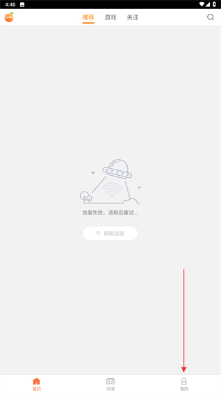 1、啟動橙子vr的應(yīng)用APP,進(jìn)入時點擊下方我的圖標(biāo)。
