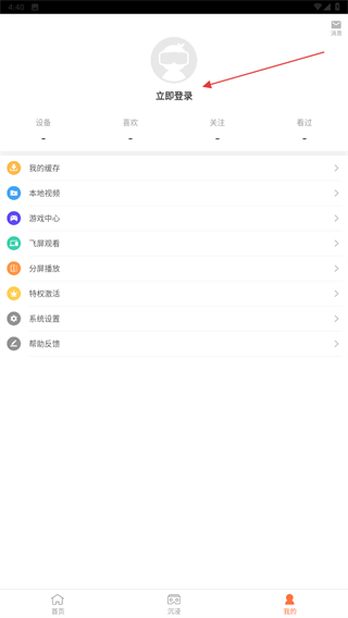 2、進(jìn)入個人中心的界面內(nèi),點擊上方立即登錄的區(qū)域。