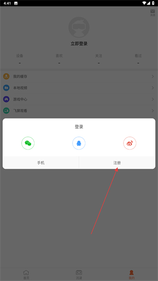 3、當(dāng)界面內(nèi)彈出登錄的方式,選擇并點擊注冊的按鈕。