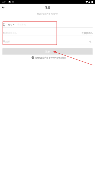 4、輸入手機號、驗證碼以及密碼,再點擊注冊按鈕即可。