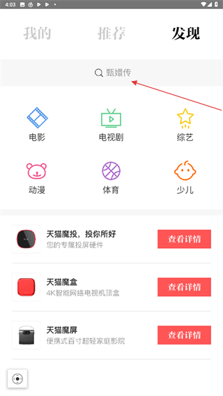 2、進入發(fā)現(xiàn)的界面內(nèi),點擊搜索框的區(qū)域位置。