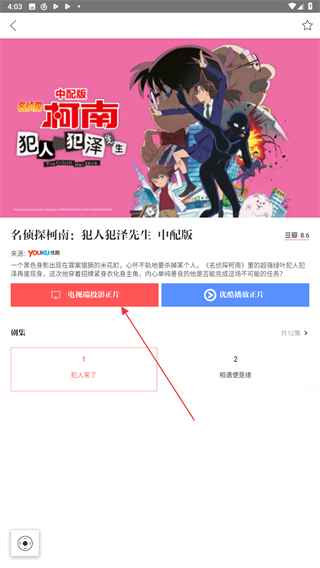 4、進入視頻播放的頁面內(nèi),點擊電視端投影正品即可。