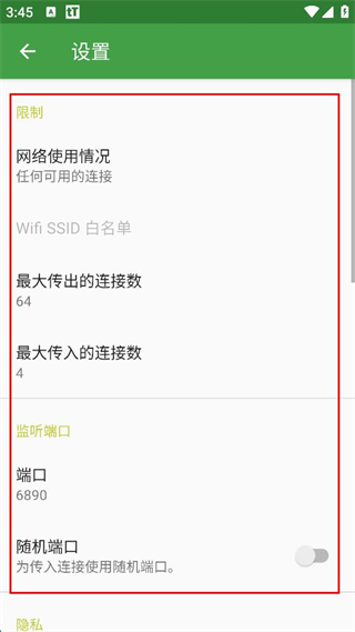 選項(xiàng)里設(shè)置下載/上傳速度