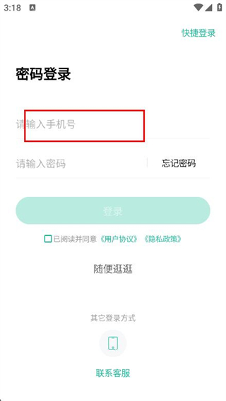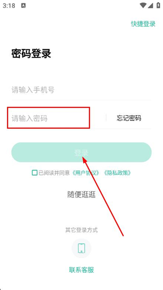 3、在密碼登錄頁面的輸入框中,填寫手機(jī)號。