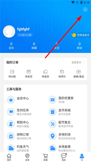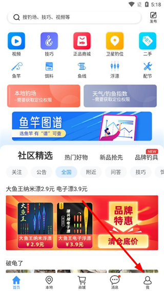1、打開釣魚人,點(diǎn)擊底部導(dǎo)航欄最右側(cè)的我選項(xiàng)。