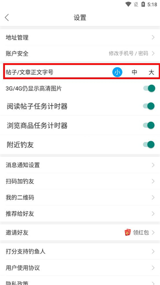 3、在設(shè)置頁(yè)面找到帖子文章正文字號(hào)選項(xiàng)。