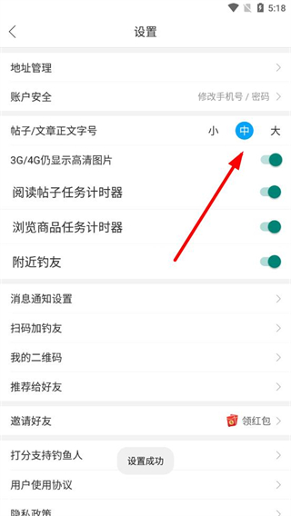 4、點(diǎn)擊選擇小、中、大字號(hào),即可修改字體大小。