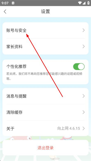 3、進(jìn)入設(shè)置頁(yè)面后,找到并點(diǎn)擊上方賬號(hào)與安全選項(xiàng)。