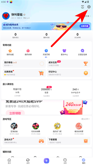 2、在個(gè)人頁面中,點(diǎn)擊右上角的設(shè)置圖標(biāo),進(jìn)入設(shè)置界面。