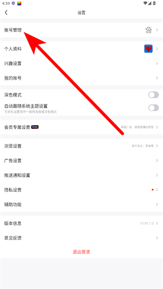 3、在設(shè)置界面中,點(diǎn)擊賬號(hào)管理選項(xiàng),進(jìn)入賬號(hào)管理界面。