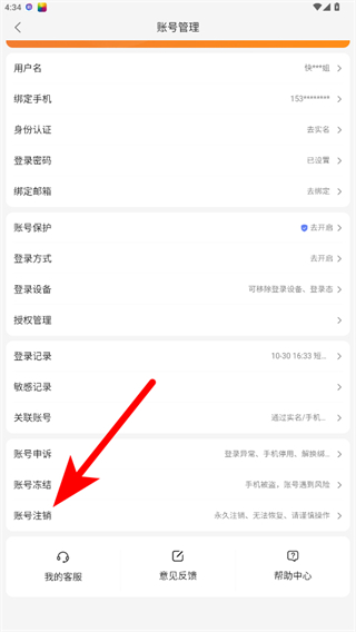 4、在賬號(hào)管理界面中,點(diǎn)擊賬號(hào)注銷選項(xiàng),按照提示完成賬號(hào)注銷操作即可。