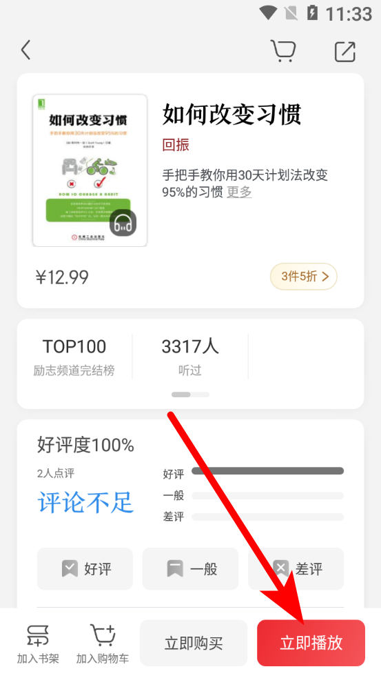 3、在書籍詳情頁面,點擊立即播放按鈕,進入聽書界面。