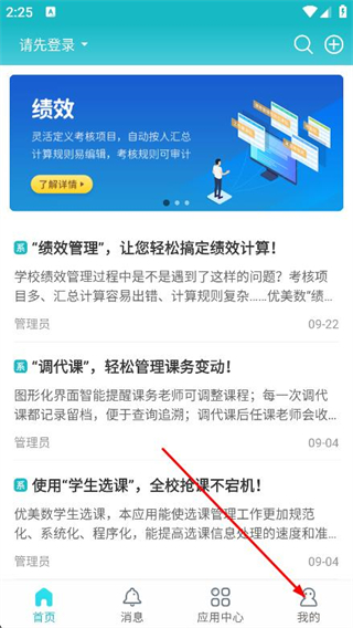 1、打開江陰教育app,點(diǎn)擊底部導(dǎo)航欄的我的選項(xiàng)。