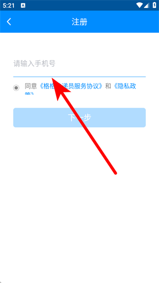 3、在注冊頁面輸入手機號碼,勾選同意相關(guān)協(xié)議。