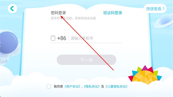 2、在登錄頁面,找到并點(diǎn)擊上方的密碼登錄選項。