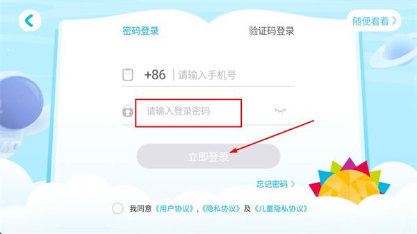 4、填寫對應(yīng)的密碼,點(diǎn)擊立即登錄按鈕即可完成登錄。
