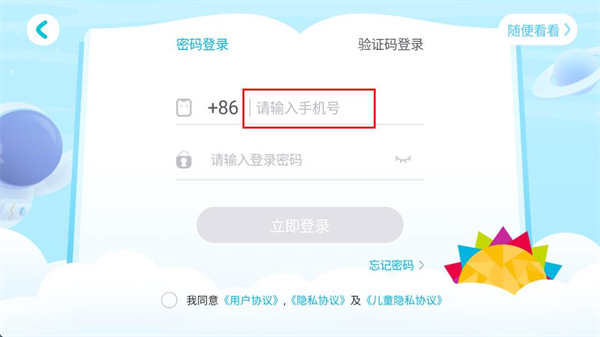 3、點(diǎn)擊輸入框,在輸入框中填寫需要登錄的手機(jī)號碼。