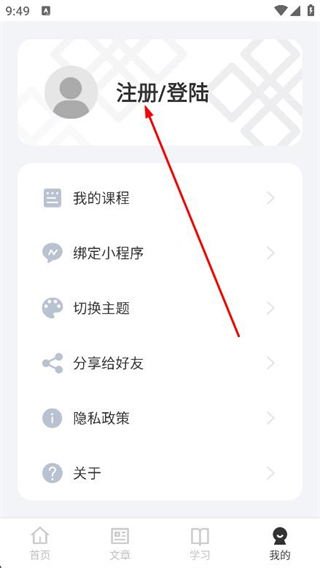2、在我的頁面中,找到并點(diǎn)擊上方的注冊/登陸區(qū)域。