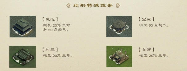2、部分地形具備增益效果如城池寶庫等可增加怒氣值從而提升兵力對戰(zhàn)前優(yōu)先選擇此類地形布局能優(yōu)化資源利用為戰(zhàn)局奠定優(yōu)勢基礎(chǔ)。